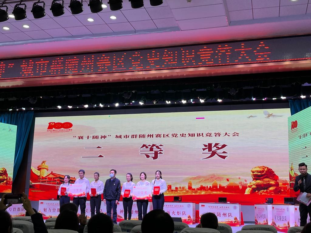 通讯员董惠玉报道 10月9日下午,在随州市中心医院文帝院区至爱学术报告厅举行的随州市党史知识竞赛中,由我院樊金星和来自市统计局和市纪委的共三位同志组成的神韵随州队荣获二等奖,我院樊金星同志获得学习标兵荣誉称号,将作为随州市四代表之一参加“襄十随神”城市群党史知识竞赛决赛。