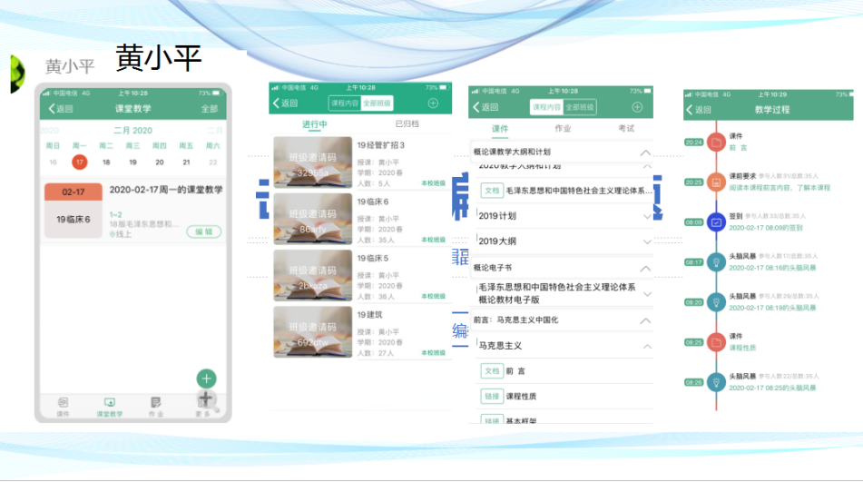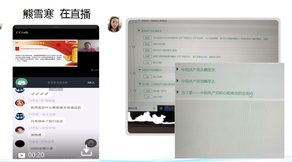 2月17日所有思政教师都按课表在规定时间利用云课堂进行了线上教学,其中有四位老师进行了现场直播授课。