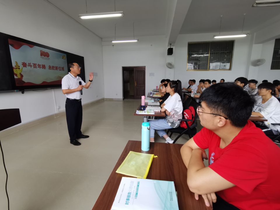 通讯员董惠玉报道 9月17日,随州职业技术学院2021级新生正式开始上课,学校党委书记李德荣走进2021级汽车学院机电、工业机器人班级为新生上第一堂形策课《奋斗百年路启航新征程》。