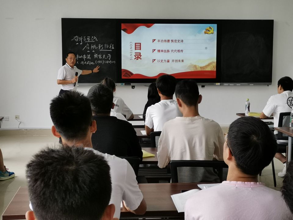 在课上,李德荣书记为新生们梳理了我党辉煌的党史,从开天辟地创造了新民主主义革命伟大成就到改天换地创造了社会主义革命和建设的伟大成就到翻天覆地创造了改革开放和社会主义现代化建设的伟大成就再到惊天动地创造了新时代中国特色社会主义的伟大成就。接着,从党史中,总结我党的坚持真理、坚守理想;践行初心、担当使命;不怕牺牲、英勇斗争;对党忠诚、不负人民的精神血脉。最后,鼓励同学们要以史为鉴,汲取党史中的智慧,总结党的执政规律、社会主义建设规律和人类社会发展规律,即必须要坚持中国共产党坚强领导,必须要团结带领中国人民不断为美好生活而奋斗,必须继续推进马克思主义中国化,必须坚持和发展中国特色社会主义,必须加快国防和军队现代化,必须进行具有许多新的历史特点的伟大斗争,必须加强中华儿女大团结,必须不断推进党的建设新的伟大工程。
