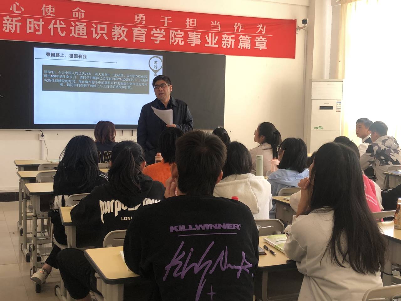通讯员董惠玉报道 10月12日,童加斌副院长走进21级临床12班,认真聆听了马克思主义学院蒋梅林老师的思政课。蒋梅林老师为学生们生动讲述了《第一章领悟人生真谛 把握人生方向》中的《第三节 创造有意义的人生》。童院长听完后,走上讲台也为同学们谈了自己的感悟,鼓励大家一定要志存高远,找准人生的方向,一定要将人生的方向与国家民族的命运紧密联系,做对社会有用的人,积极投身实现中国梦的奋斗之中去。