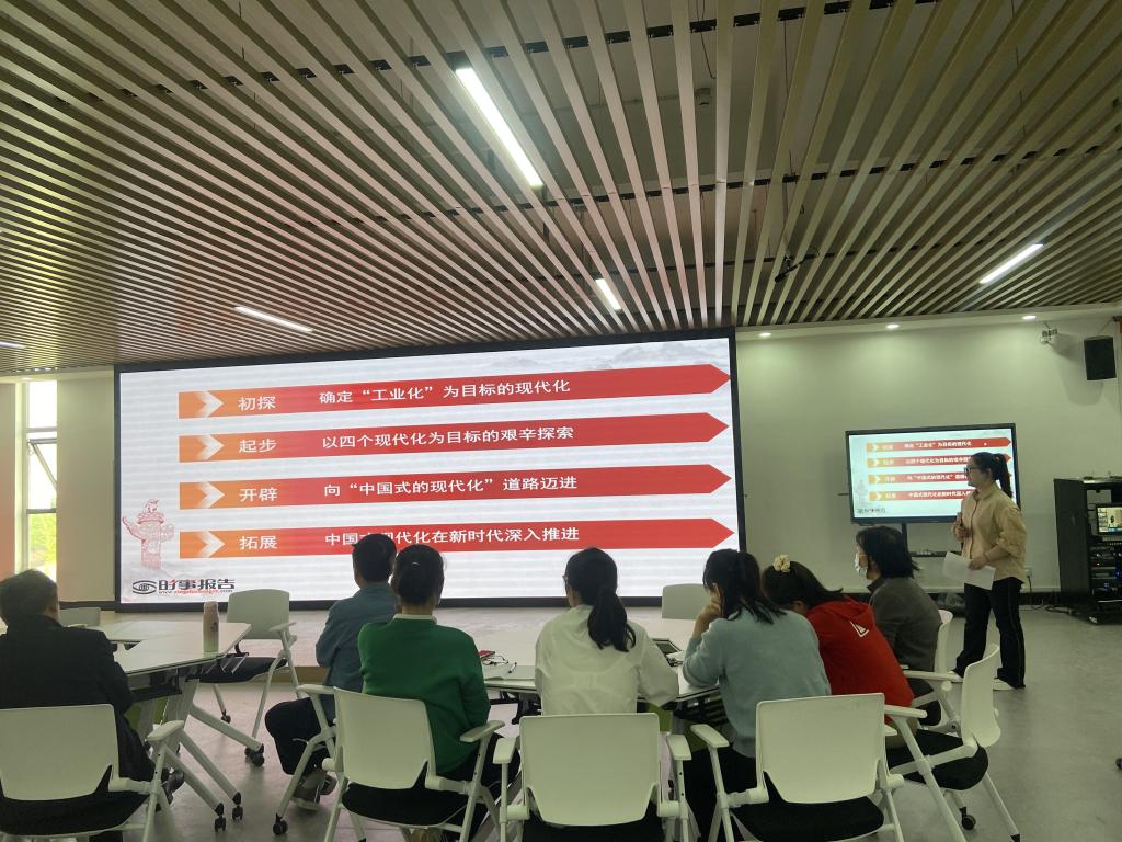 首先由马克思主义学院青年教师樊金星展示了《以人民为中心走好高质量发展之路》,她探索了形策课与护理专业、与时代热点、与学生实际相结合的路径。青年教师简竹荺展示了《中国式现代化与乡医之路》,探索了形策课与临床医学专业的深入融合。