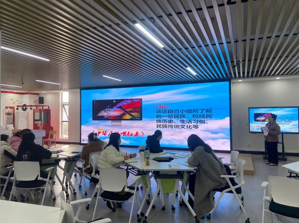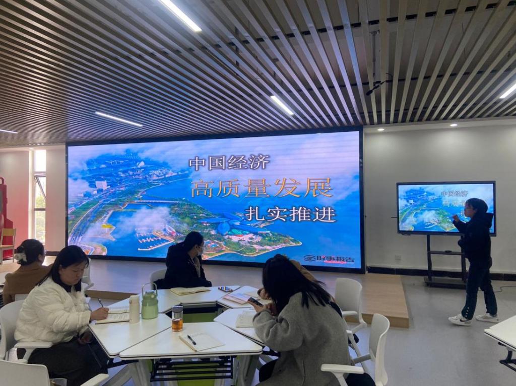首先由兼职教师黄园园展示了《中国经济高质量发展扎实推进》,主要围绕高质量发展内涵展开了讲述,通过三个问题引出我们现在处在数字经济时代,并从创新驱动、协调发展、绿色发展、开放发展、共享发展五个角度概况了高质量发展的内涵。马院教师简竹筠展示了《铸牢中华民族共同体意识》,探索了铸牢中华民族共同体意识的由来,围绕“五个认同”谈对铸牢中华民族共同体意识的认识。